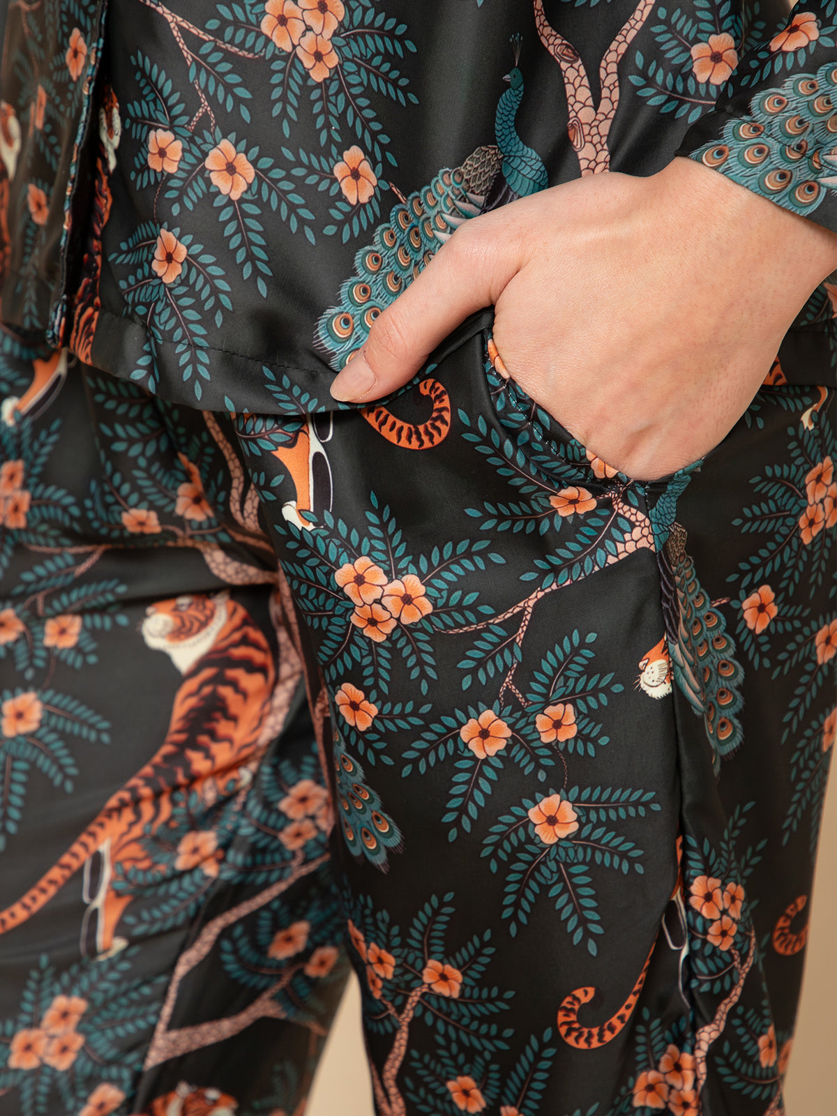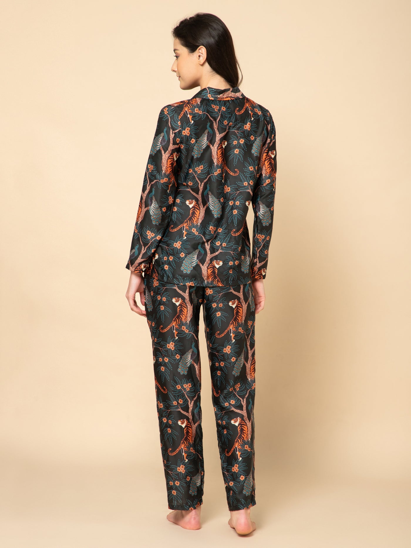 Inform when this item available Women Black Satin leopard Printed Pyjamas Set