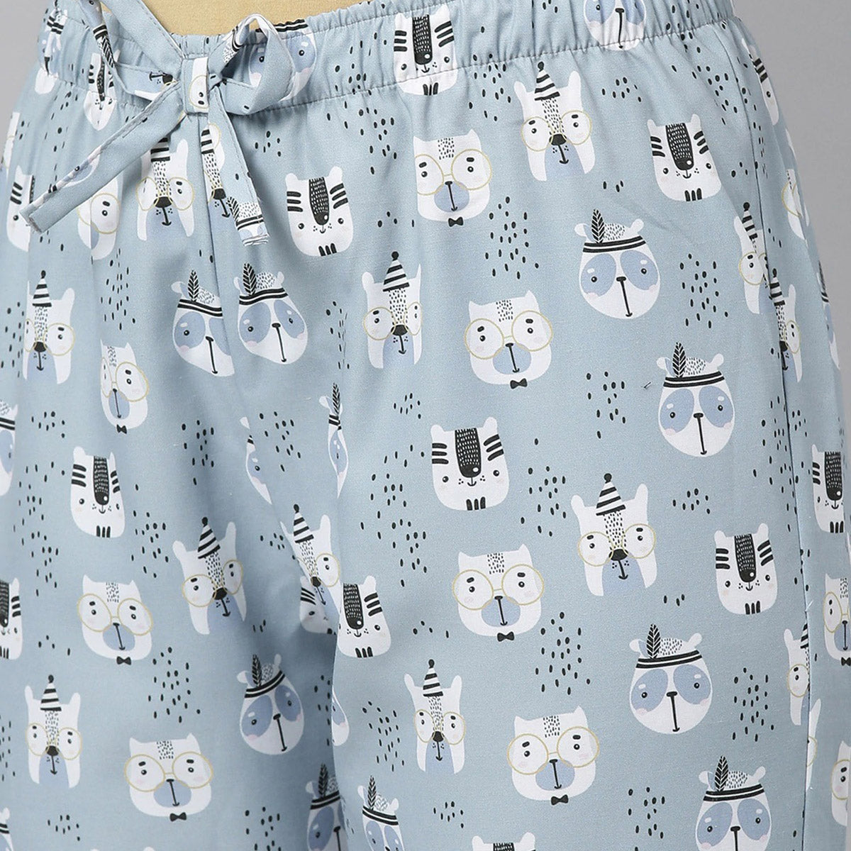 Women Black T-Shirt with Grey Animal Print Night Suit