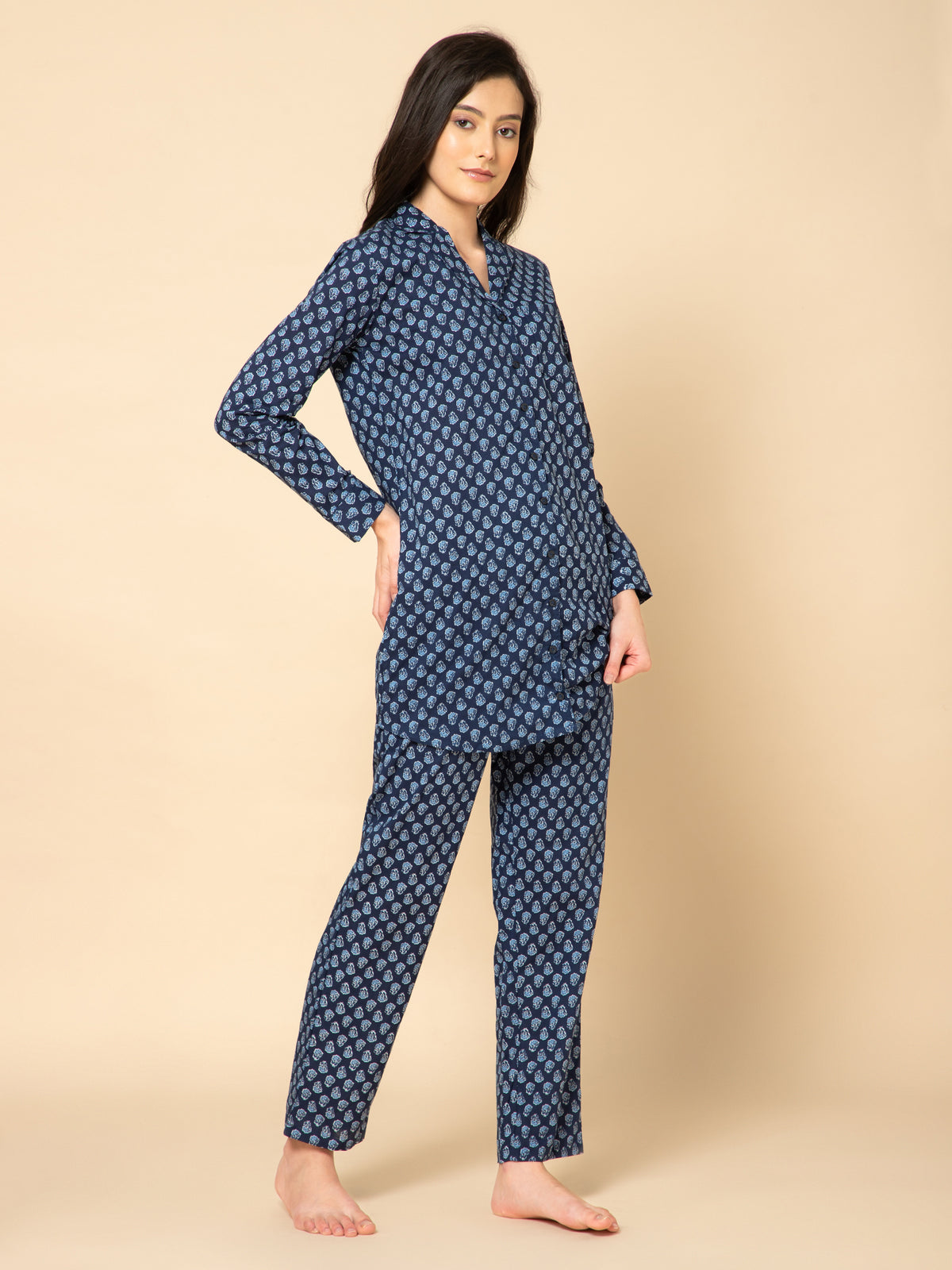 Inform when this item available Women Blue Floral Print Pyjamas Set