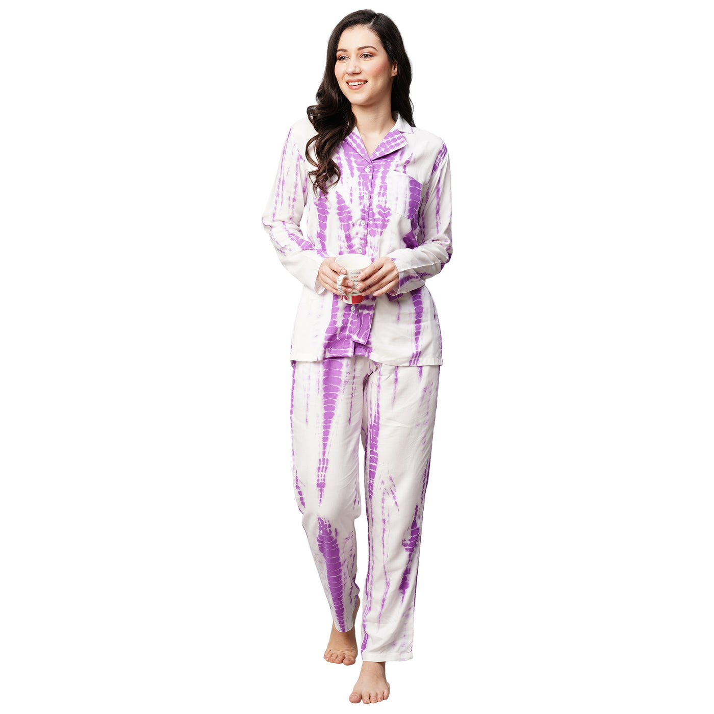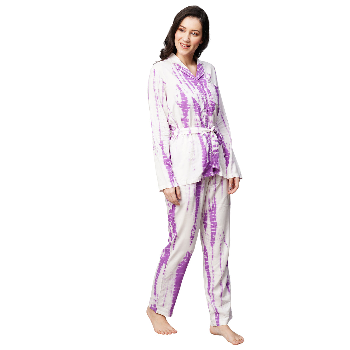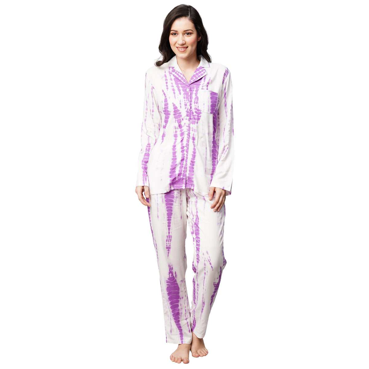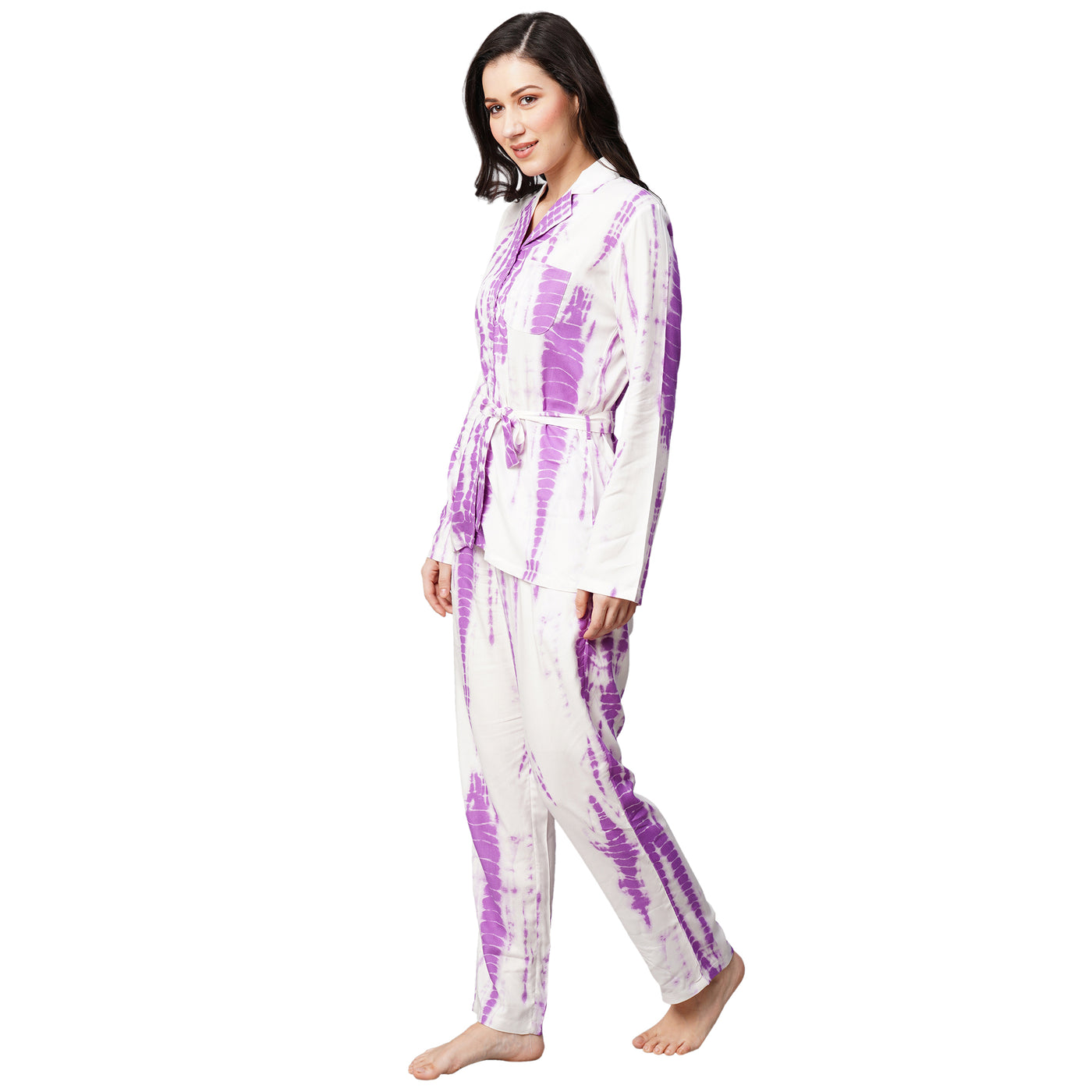 Inform when this item available Drape In Vogue Womens Purple Tie And Dye Print Night Suit