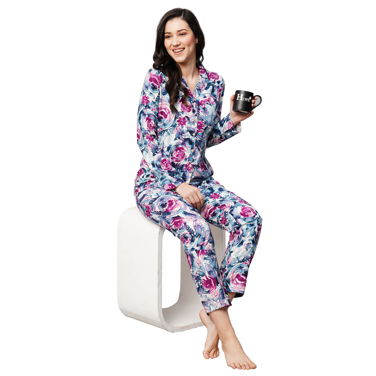 Inform when this item available Drape In Vogue Womens White With Floral Print Night Suit